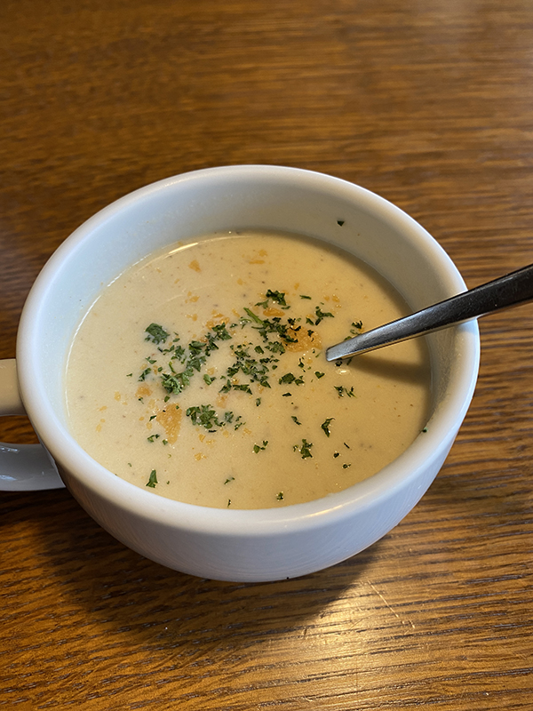 ランチセットを頼むと日替わりスープがでてきます。(今回はじゃがいもとキノコのスープでした。)
