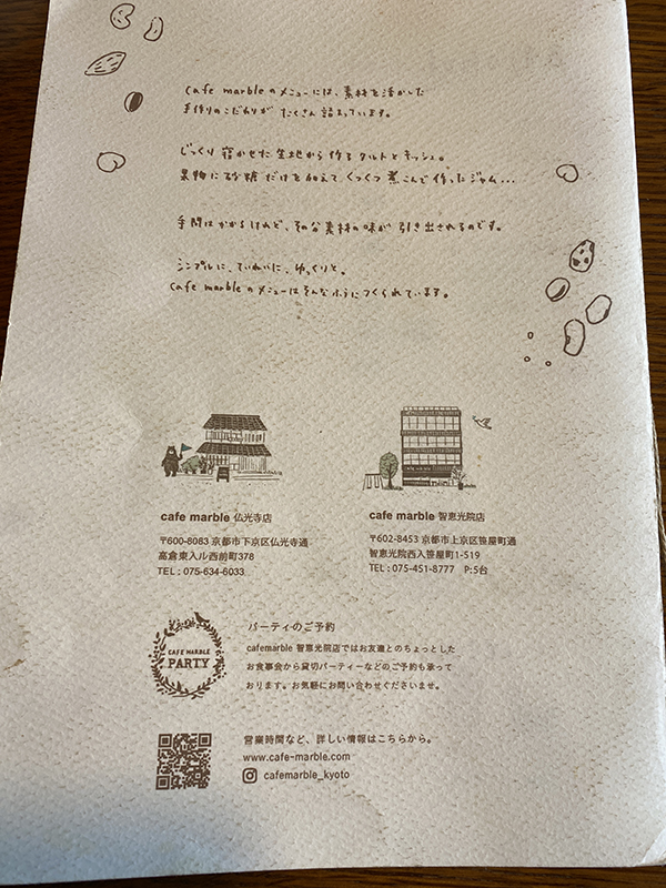 烏丸5番出口を出て1〜2分くらいのところ(左側)に、キッシュのお店「cafe marble」があります。