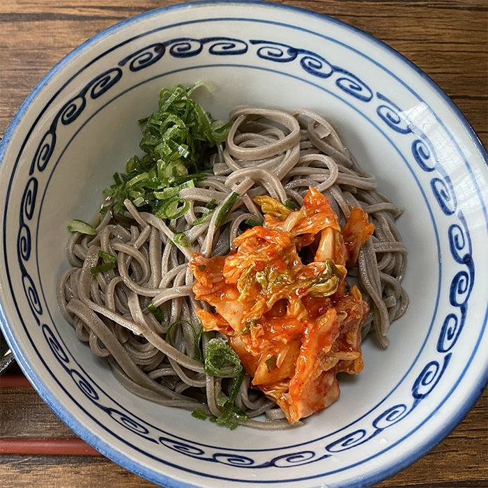 栄養満点でダイエット食に向いているそばと、発酵食のキムチを合わせた「キムチそば」です。