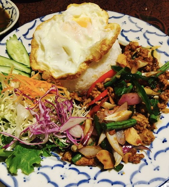 次は目玉焼きが乗った肉とバジルの炒め物(パッガパオ・ラートカオ)。