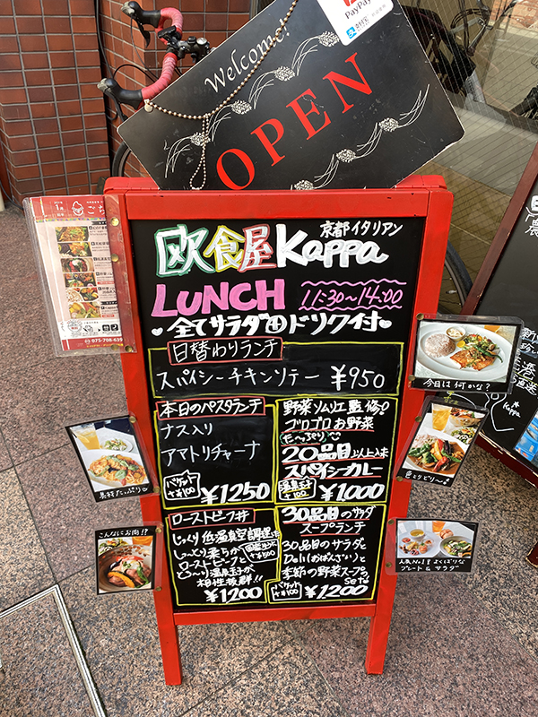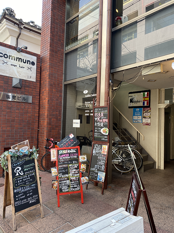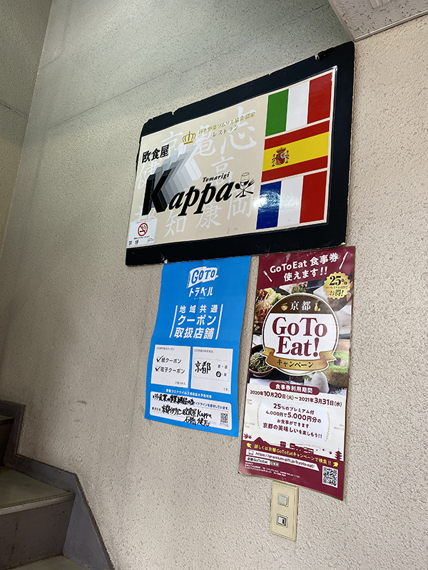 その仏光寺通りを歩いて5分くらいのところ右側に欧食屋Kappaさんがあります。