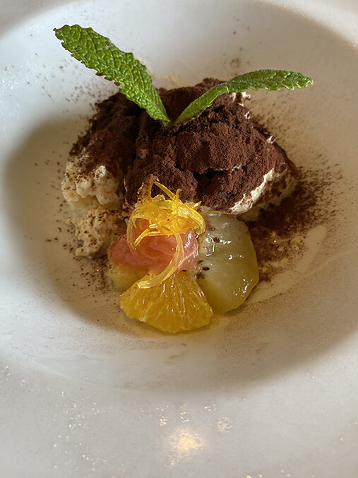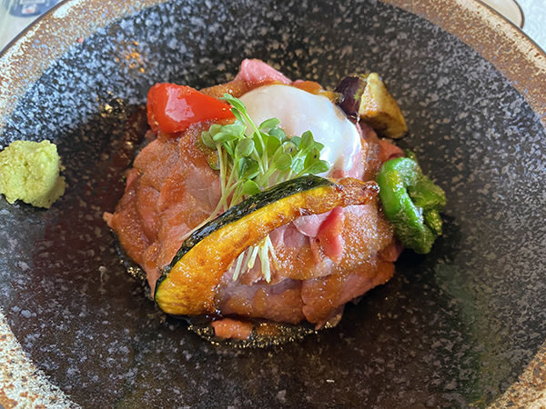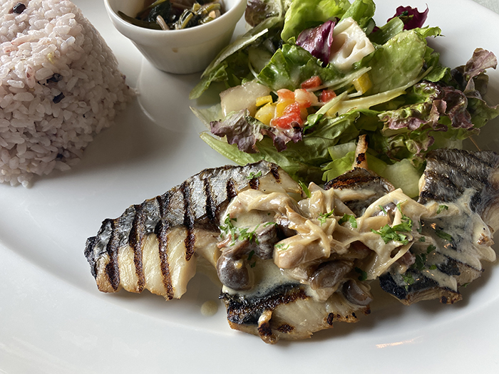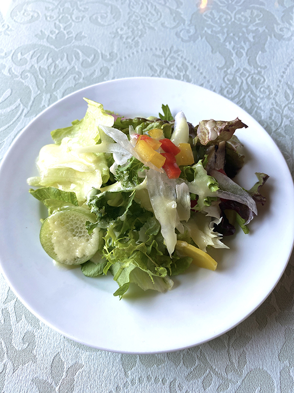 つけあわせのサラダには変わった野菜が入ってて時季ごとに新鮮なものを仕入れるのだとか。