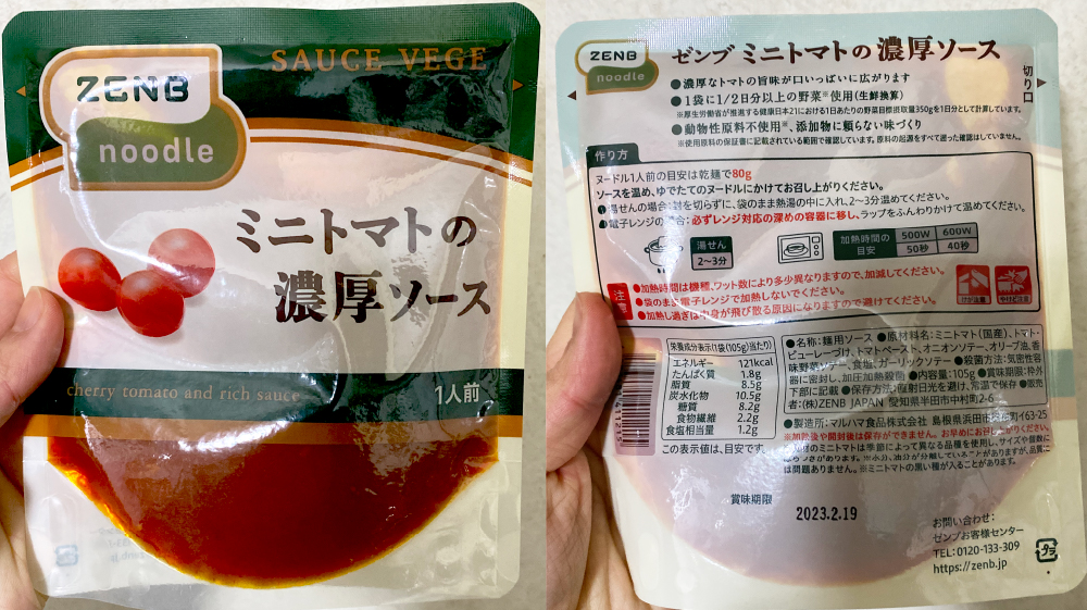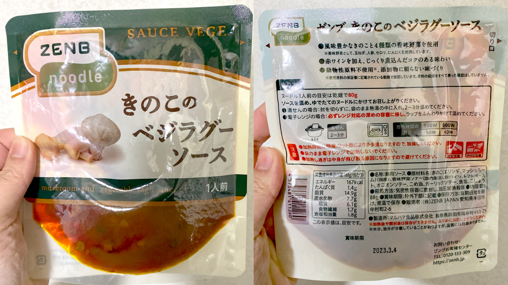どうせならソースも無添加のもので食べたい!と言うことで、Amazonにて『ZENB ヌードル4束、ZENBソース4袋入』2,484円(一食621円)を購入してみました。↓