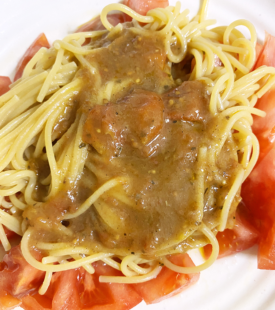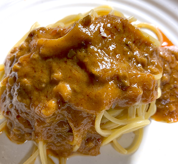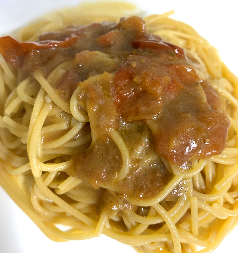 こちら味はとても美味しいのですが、パスタとソースだけだと量が少ないのが少し不満なところ…。