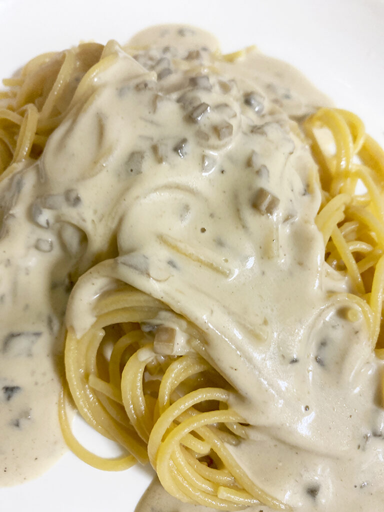 シンプルなクリーミーさが細かく切り刻まれたキノコとの相性抜群!