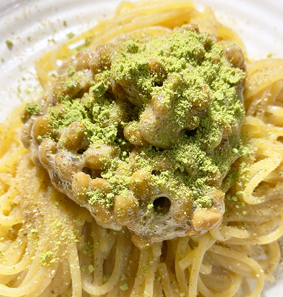 これはZENBのパスタソースを使わず、納豆だけを載せてみました。